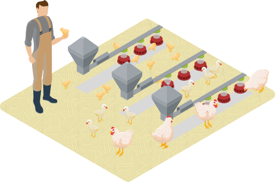 Broilers grow to an ideal market weight of about 2 kg over 35–40 days. Farmers monitor their health, ensuring they have everything they need for optimal growth.
