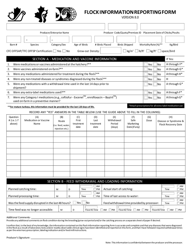 On-Farm Food Safety (2021) and Animal Care Program (2018) Flock Specific Records (Version 7.0)