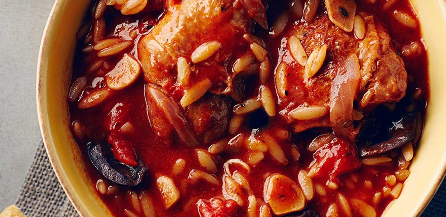 - 3 Cover, reduce the heat and simmer for 1 hour. Stir in orzo and cook, uncovered, for 6 minutes more or until orzo is tender. Stir in the olives. Taste and adjust seasoning. Ladle into heated bowls and sprinkle with parsley.
