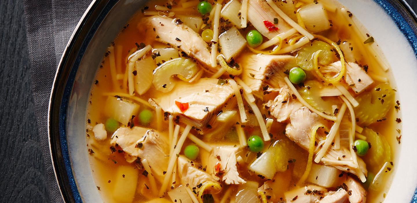 - 1 Heat stock in soup pot. Add chopped chicken, minced onion, garlic, chili pepper flakes, basil, peas, turnip and celery. You can substitute 1 Tbsp fresh Thai basil for the dried if you have it. Cover and bring to a boil.