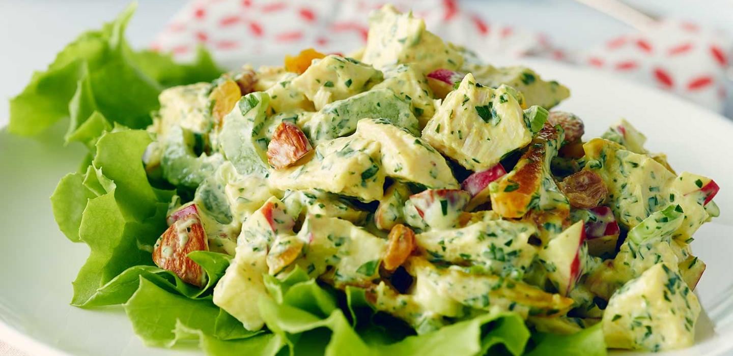 - 3 Measure out whole apricots, then thinly slice. Add to salad with celery and green onions. Drain raisins and stir in. Dice apple and stir in along with the coriander if using. Then taste and add more curry or salt if you like. If not creamy enough, stir in more mayonnaise or sour cream, a little at a time. Stir in nuts or save for sprinkling over the salad. If making ahead, cover and refrigerate up to 2 days. Serve on lettuce or a bed of greens.