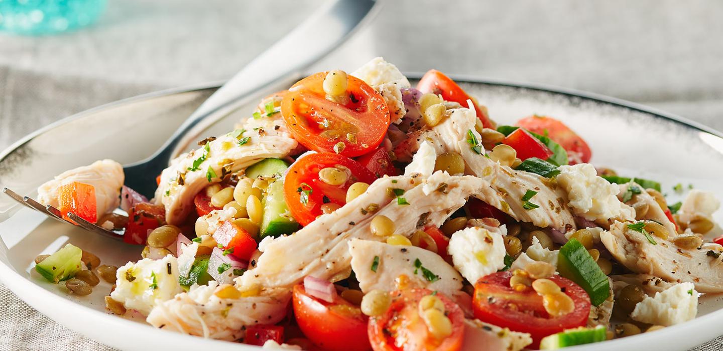 - 1 Rinse the canned lentils under cold running water and leave to drain. Alternately, use 2 cups (500 mL) of cooked from-scratch lentils. Add to a large salad bowl.
