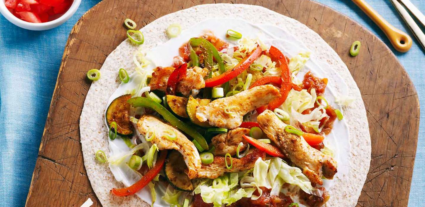 - 7 To serve, spoon chicken mixture onto center of warm tortilla. Add toppings, fold tortilla over filling and enjoy!