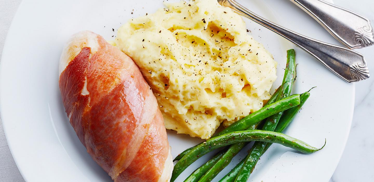 - 4 Plate the mashed potatoes with the green beans and the chicken breast.