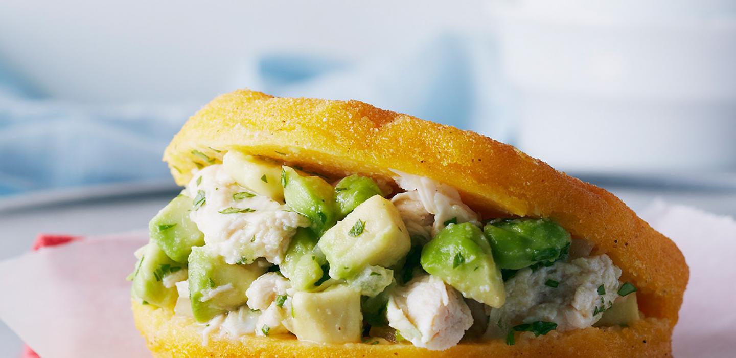 - 6 While the arepas bake, make the filling. Combine the chicken, avocado, onion, lime juice and cilantro in a medium sized bowl. Season with salt.