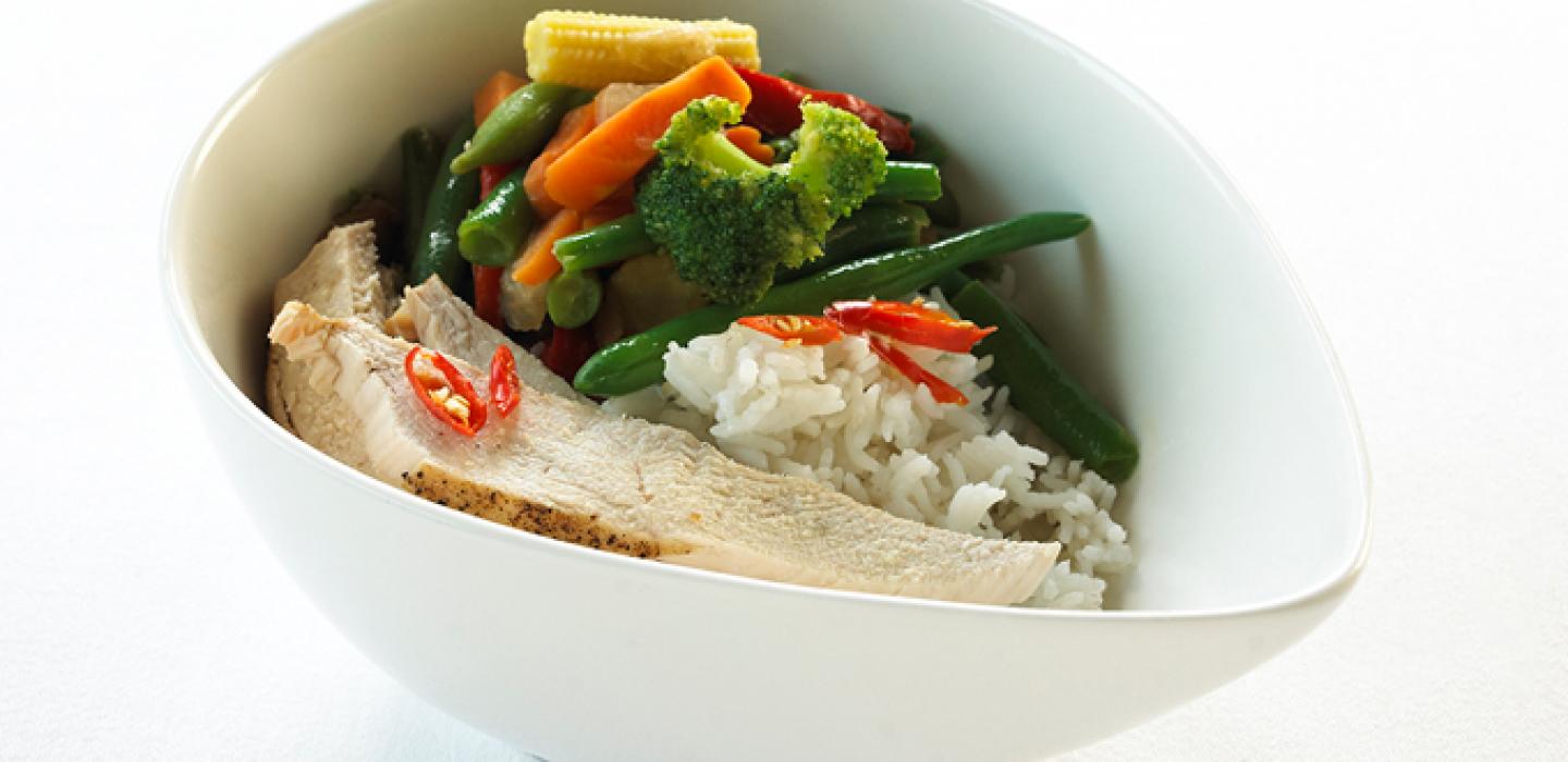 - 2 In a saucepan bring water to a boil. Add rice and stir. Reduce heat, cover and simmer for 20 minutes.