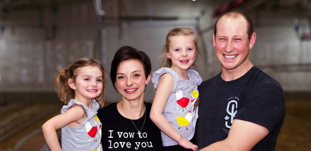 We got married in 2012. Our first daughter, Tori was born in 2014 and second, Leah in 2016. Both the kids are hands on & a part of our lives in the barns – just as we were as kids.